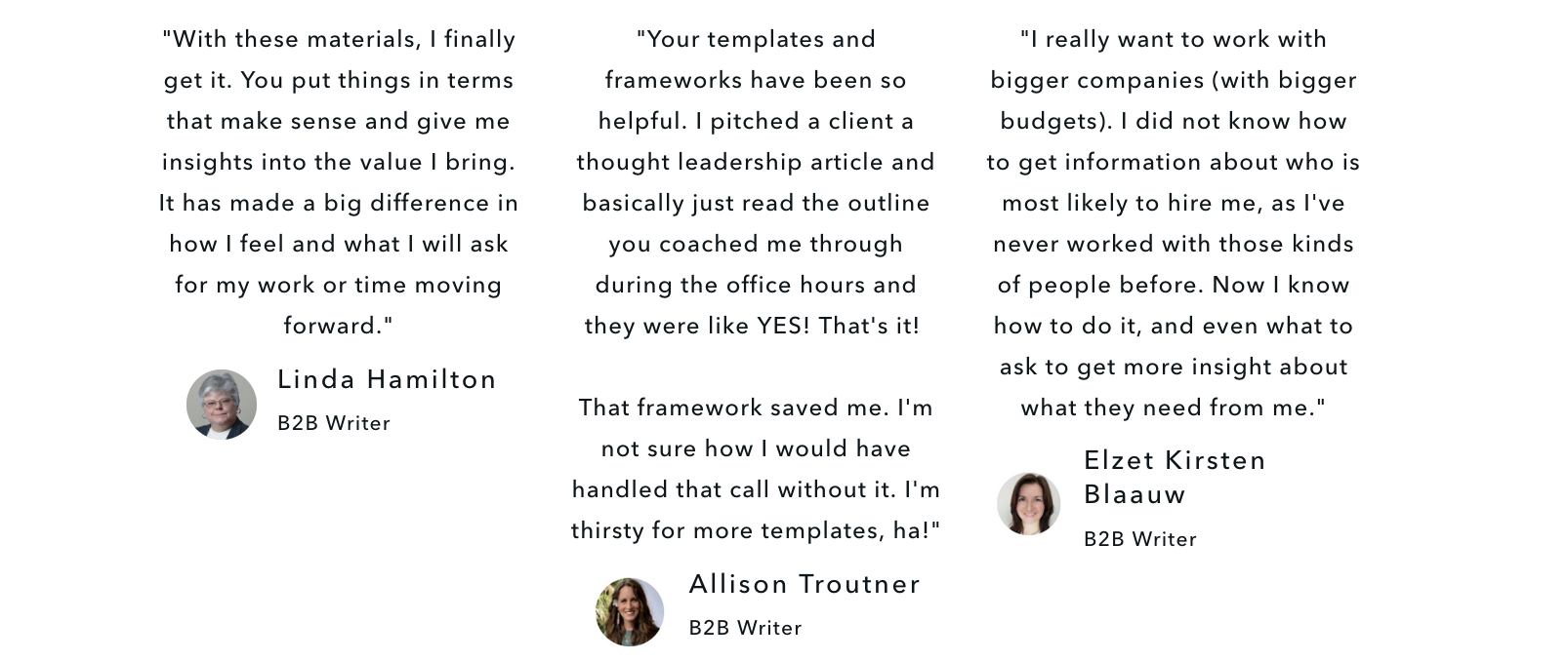 ⇨ You’ll have an insider’s look at what goes into a successful B2B writing career, surrounded by a new community of like-minded writers