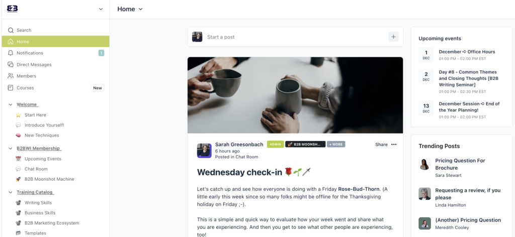 One of the most important reasons the B2B Writing Institute is the best choice on the market today is because of the hands-on approach I take to the community side of things.